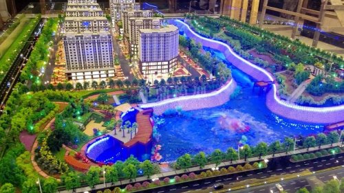 灯光的配备要根据景物的特点来进行。住宅区的建筑、水景灯光尽量用暖色,常绿树的背景则用冷光源;路灯和庭园灯应昼整齐划一,按照某种规律排布。项目尽量色彩丰富些、层次多些以烘托整体环境气氛。需要强调一点是,度的把握很重要,切忌到处都通亮,导致周边一些部分反而夺了主题的光彩。配景就是配景,主角自然是主角,没有取舍就没有重点,就没有成功的模型。